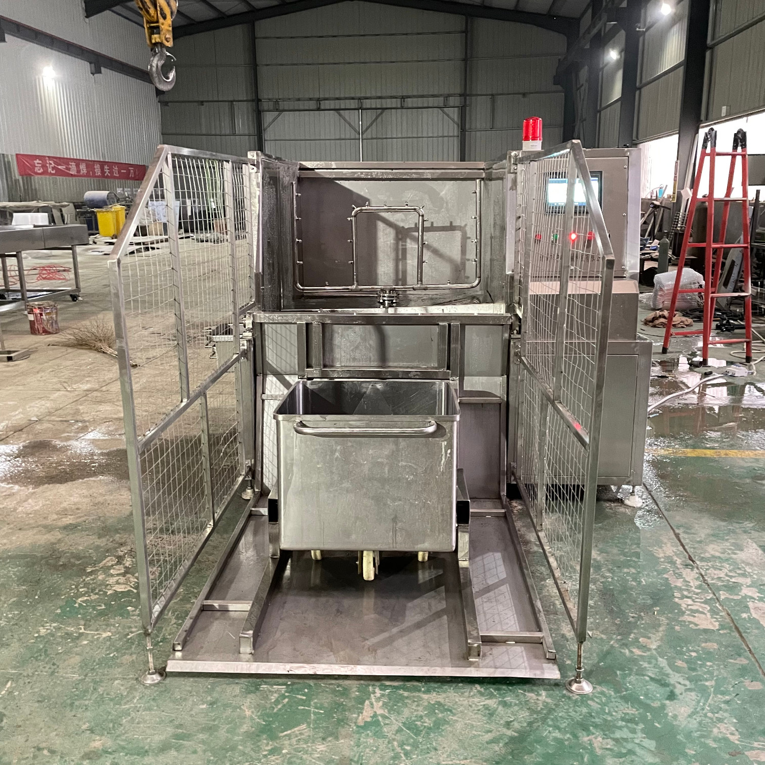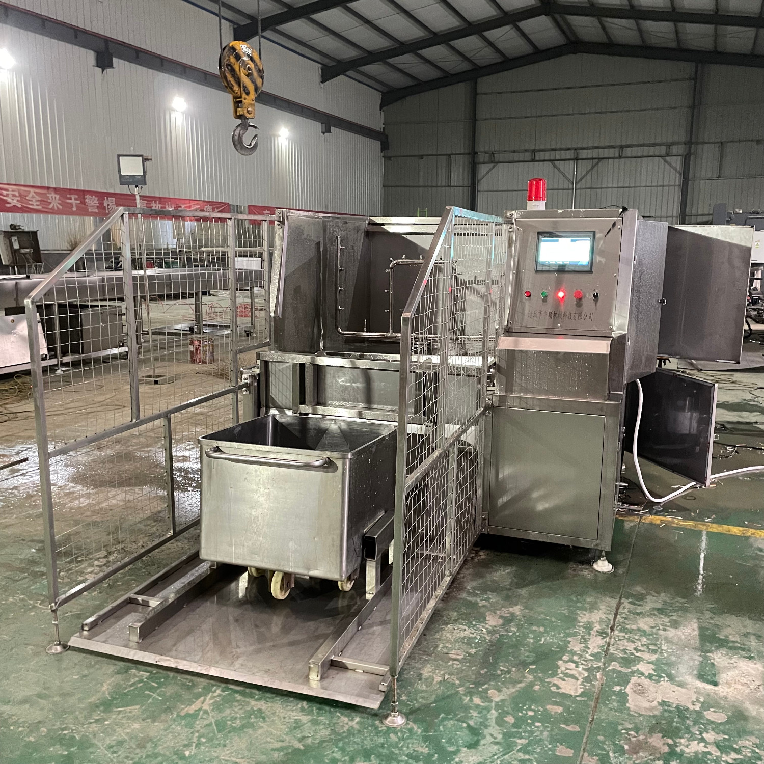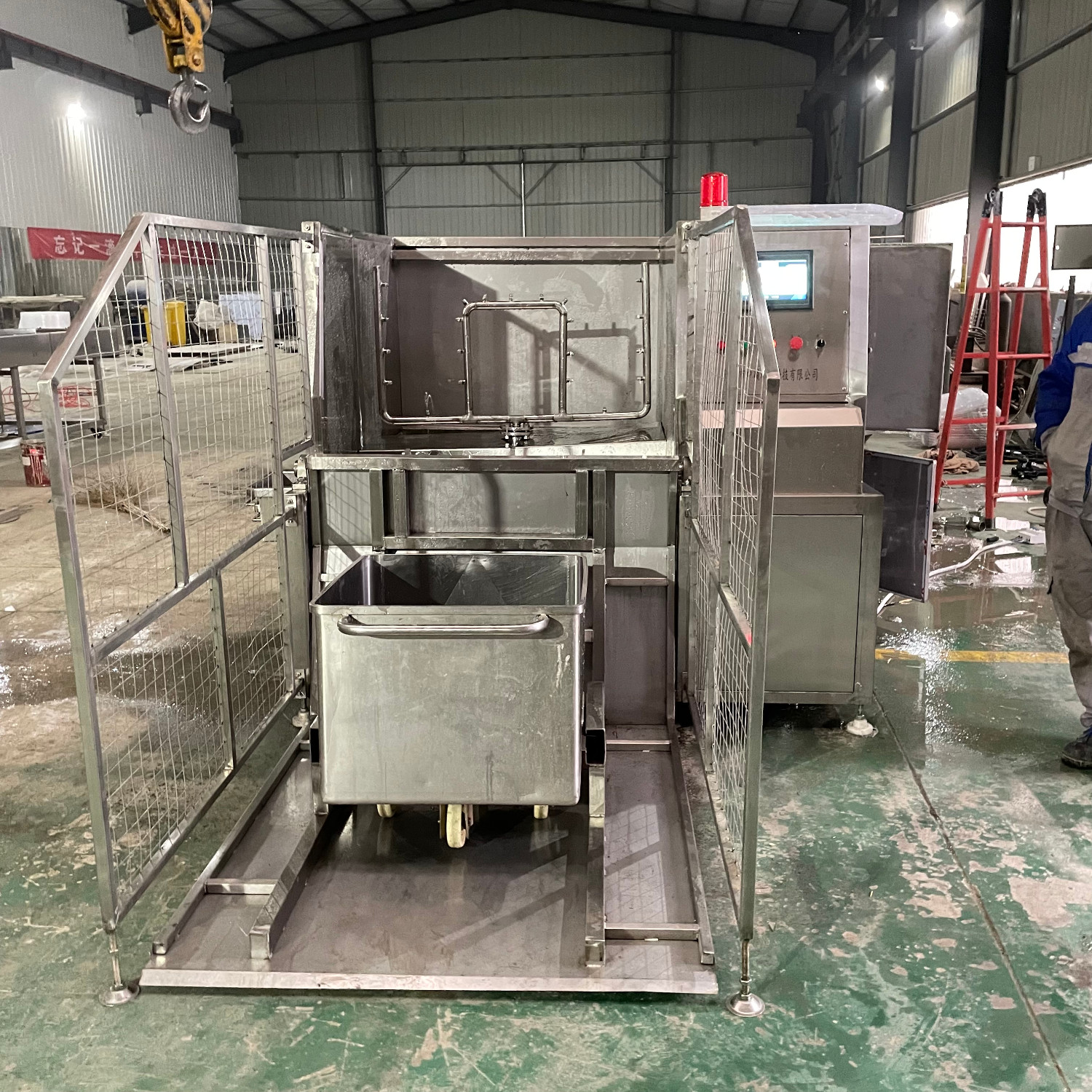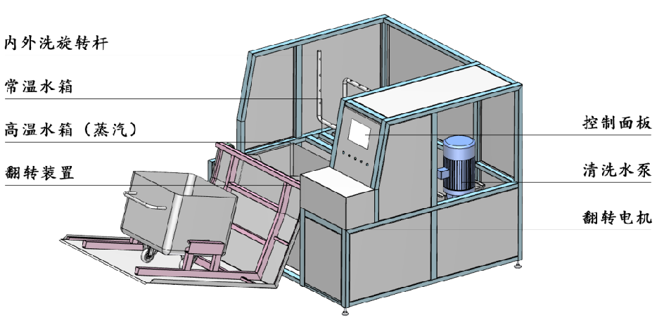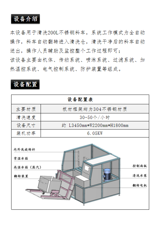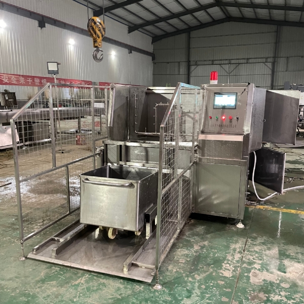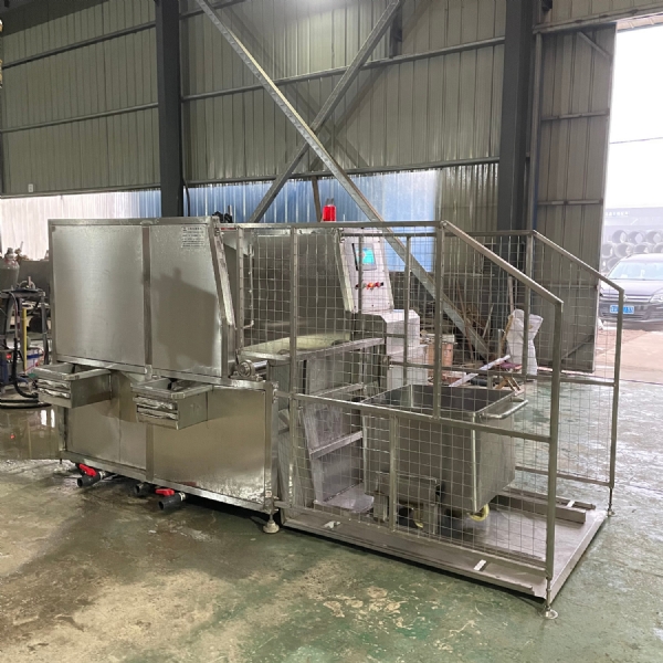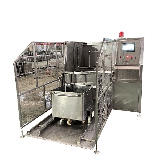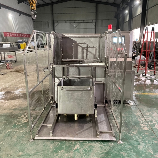 肉類食品生產(chǎn)企業(yè)中常用的工器具就是斗車(俗稱肉車),而容積為二百升的標準斗車的應(yīng)用又更為。斗車每周轉(zhuǎn)一次后均需進行清洗消 毒。一直以來,斗車的清洗基本上都依賴人工,